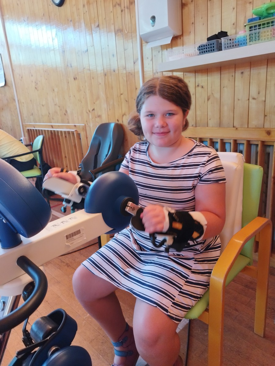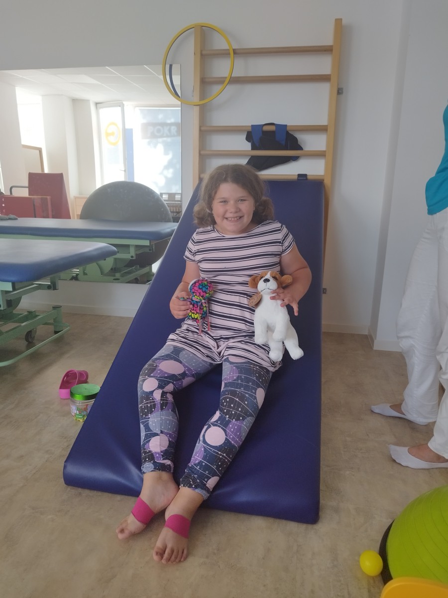 Dojíždíme na speciální neurorehabilitace, hipoterapie a také do lázní. Simonka je velmi šikovná, chodí již do čtvrté třídy a má po celou dobu pobytu ve škole paní asistenku. SMA nepostihuje intelekt, proto chodí do klasické základní školy.
